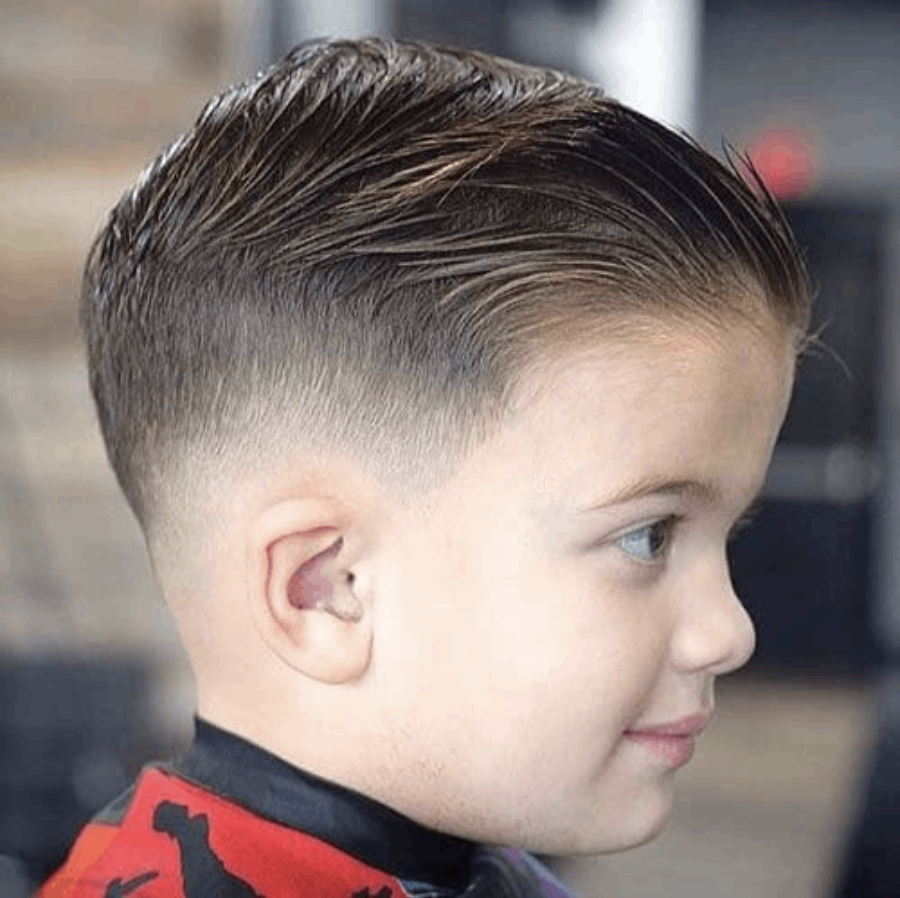 A modern, tight haircut featuring a detailed skin or zero fade on the sides. (For children up to 12 years old).